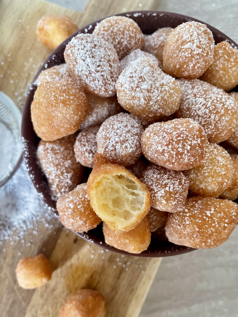 C’est précisément ce duo qui a inspiré la recette de la semaine : les pets de nonne. Ces petits beignets qui gonflent, éclatent en bouche et disparaissent avant qu’on ait eu le temps de les retenir, comme un clin d’oeil malicieux aux mots que John ne peut pas ravaler. Mais aussi, dans leur douceur sucrée, leur moelleux réconfortant, un hommage à la tendresse de Dotty : ce quelqu’un qui accueille les éclats sans jamais broncher. Sucrés, imprévisibles, impossibles à bouder.