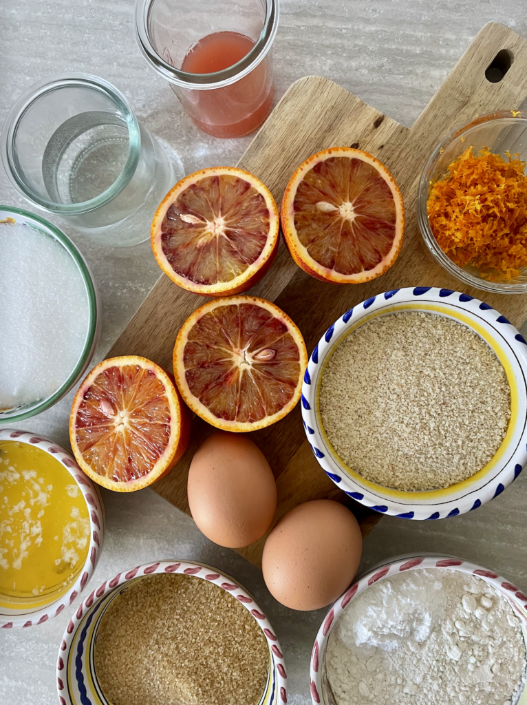 2 œufs / 90g de beurre fondu / Le zeste d’une orange / 100g de farine / 10g de levure chimique /50g de poudre d’amande / 30g de jus d’orange
