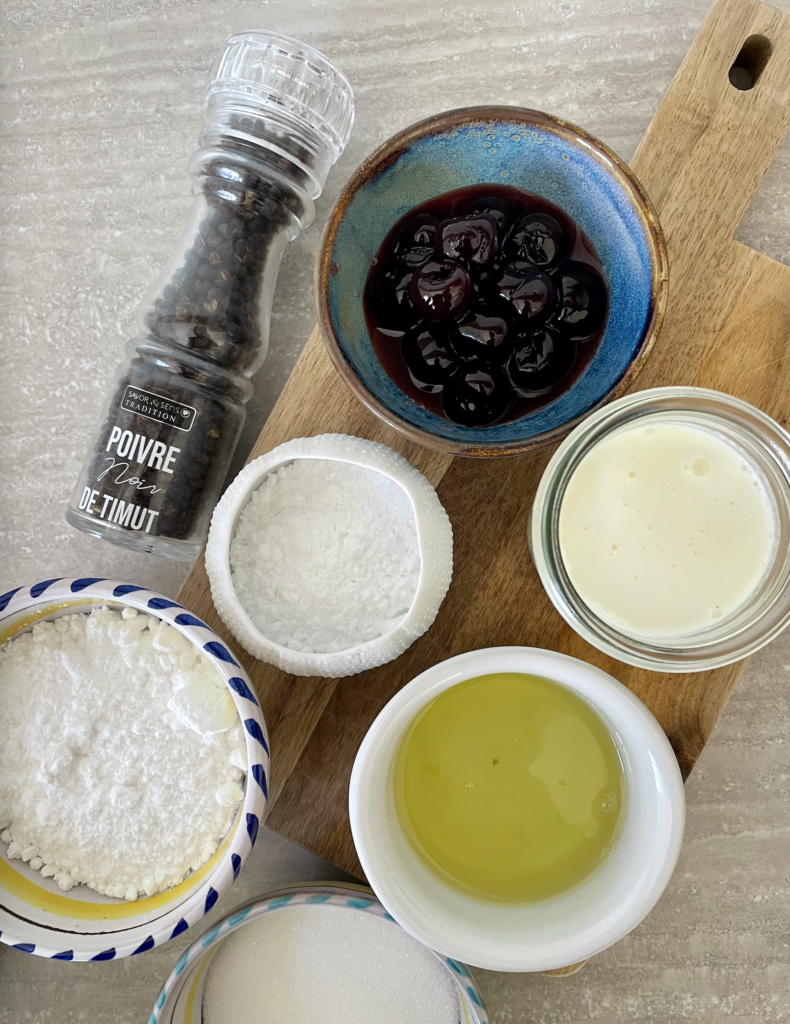 Pour la chantilly : 20cl de crème liquide entière / 15g de sucre glace / 2 tour de moulin de poivre de timut